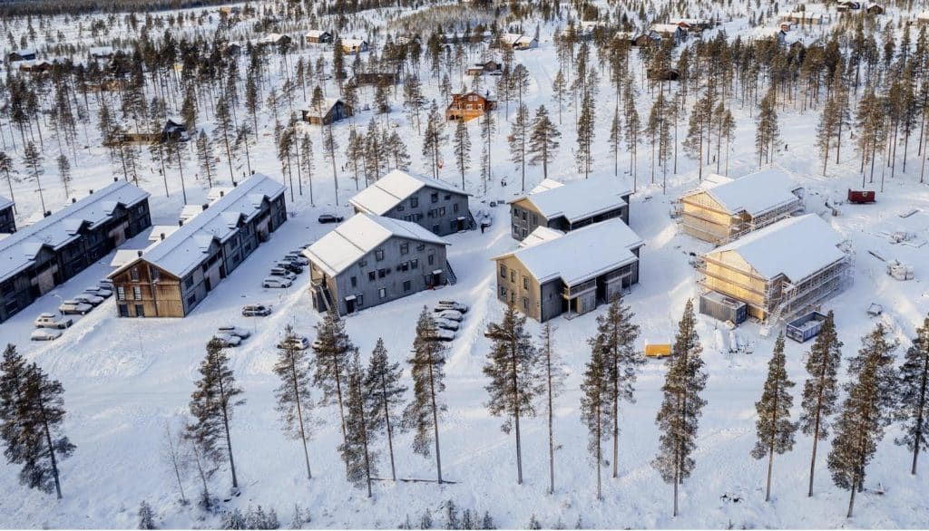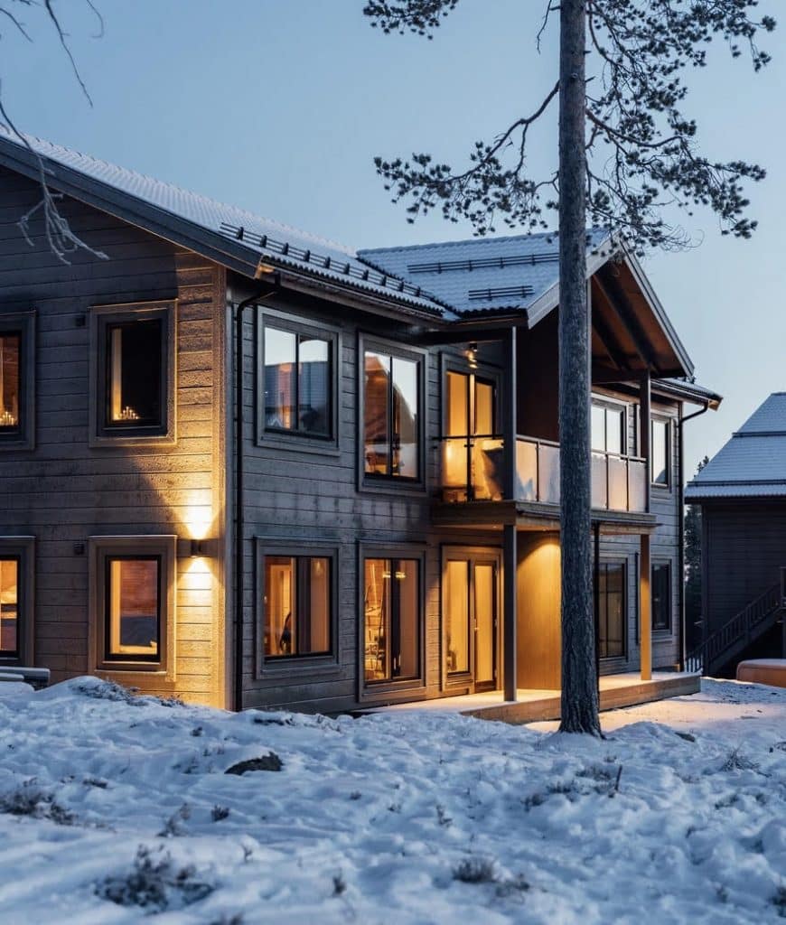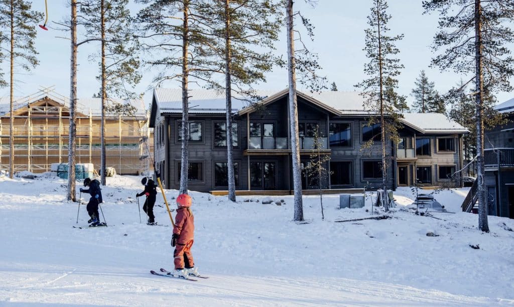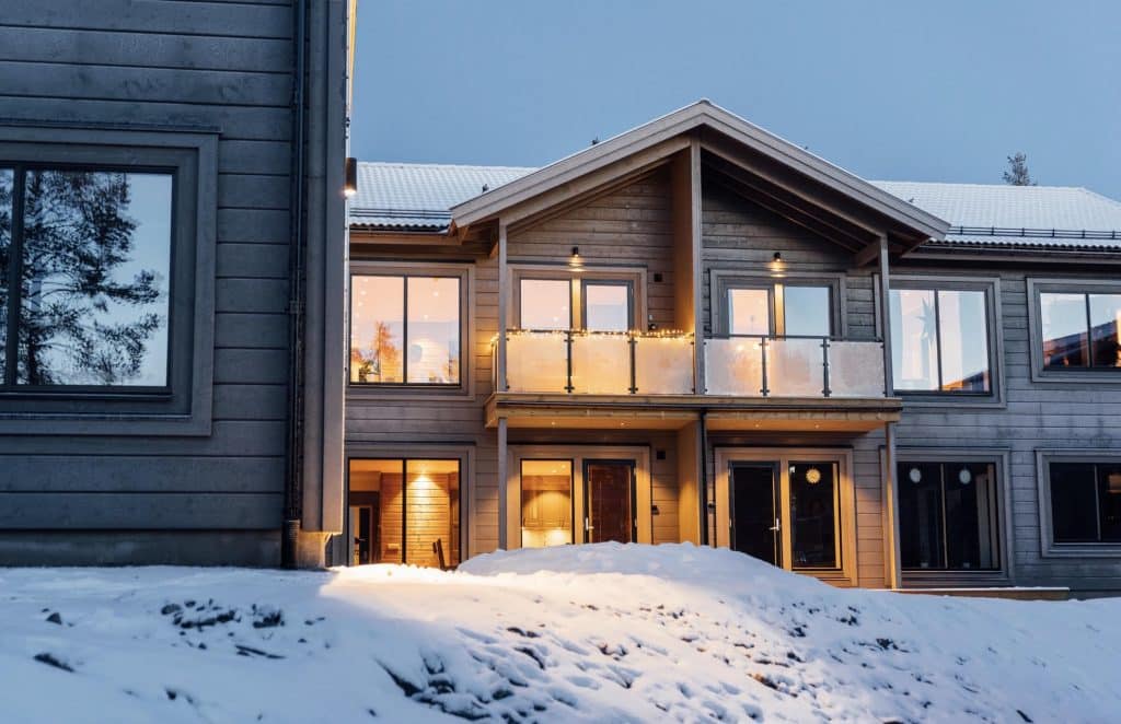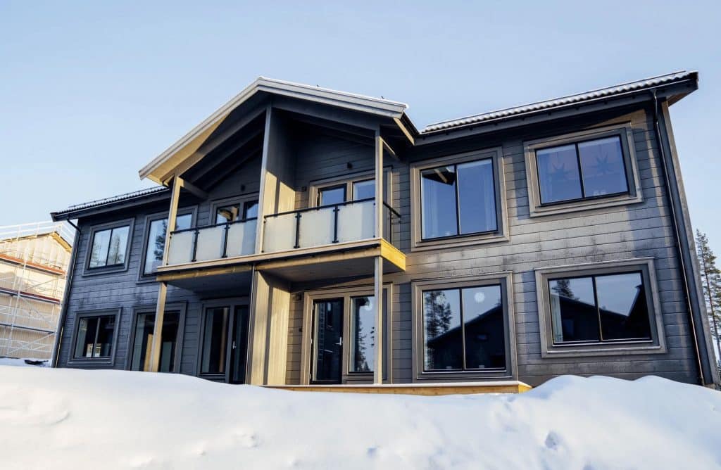 Appartements dans la station de ski Idre en Suède. Dans ce magnifique emplacement La maison du garde-corps a livré des garde-corps en verre à un quartier résidentiel avec des appartements.
