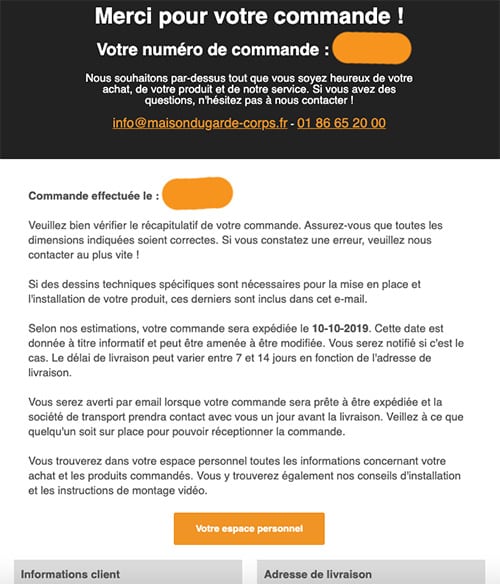 Cela se produit après une commande chez Maisondugarde-corps.fr